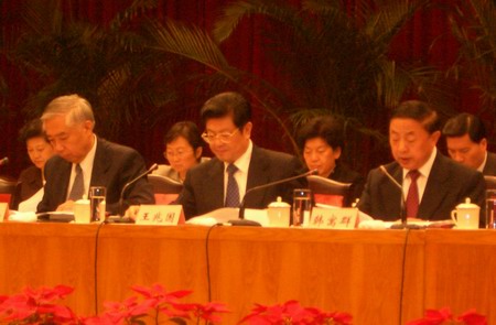  王兆國和相關部委領導、山東省委、青島市委的主要領導分別向天津大學精密測試技術及儀器國家重點實驗室激光及光電測量技術研究室等10個創新示范崗代表和北京市公交一公司張鵲鳴等10位創新能手代表頒獎;向23家“創爭”活動示范單位和3個示范班組授牌。會上還舉行了《金牌工人許振超》、《工人專家李斌》報告文學首發儀式。許振超、李斌在會上發言,許振超、李斌還和王兆國等領導同志一起向全國職工創新示范崗和創新能手代表、全國“創爭”活動示范單位(班組)代表贈書。