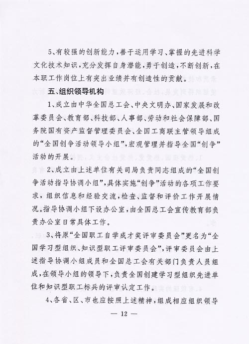 關于印發《關于開展全國“創建學習型組織,爭做知識型職工”活動的實施意見》的通知