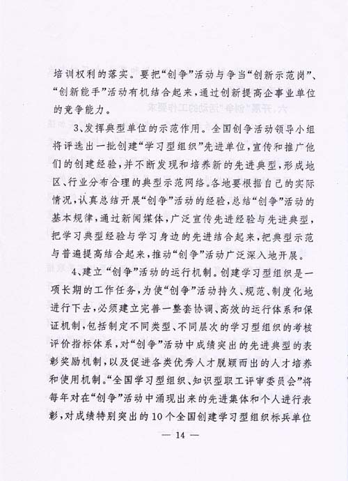 關(guān)于印發(fā)《關(guān)于開展全國“創(chuàng)建學(xué)習(xí)型組織,爭(zhēng)做知識(shí)型職工”活動(dòng)的實(shí)施意見》的通知