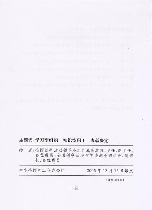 關于表彰2005年度全國學習型組織、知識型職工的決定