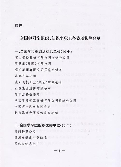 關于表彰2005年度全國學習型組織、知識型職工的決定