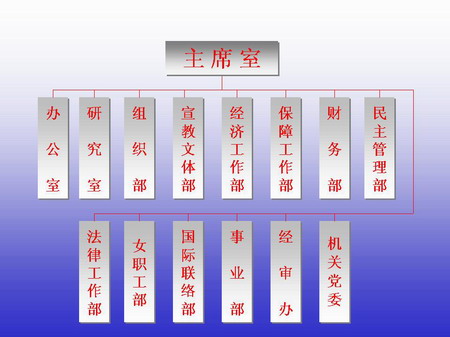 另按有關規定設置機關黨委、紀委和上總機關系統工會。機關黨委的主要職責是:負責市總工會機關及直屬單位的黨務工作、黨的紀律檢查工作和工會、共青團工作。