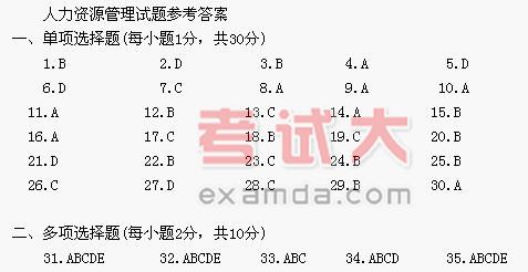 三、名詞解釋(每小題3分,共12分) 36.人力資源開發就是把人的智慧、知識、經驗、技能、創造性、積極性當作一種資源加以發掘、培養、發展和利用的一系列活動,是一個復雜的系統工程。 37.委任制是由有任免權的機關按照干部管理權限直接指定下屬工作人員的干部任用制度。 38.勞動定員是企業勞動管理的一個重要組成部分。勞動定員是企業根據生產方向、生產規模和產品方案,根據勞動定額和定員標準以及企業經營管理層次和機構設置等編制的。它規定一定時期內、一定技術條件下企業各部門應當占有的人力資源數量。 39.模擬教學法是事先設計制造一種情景,由受訓人扮演模擬環境中的角色,從事指定的活動,訓練學員在復雜情況下處理問題的能力,以達到一定培訓目的的方法。 四、簡答題(每小題4分,共20分) 40.不是任何失業者都能享受失業保險待遇,必須具備一定的條件和資格: (1)失業者必須處于勞動年齡階段,即處于法定最低勞動年齡與退休年齡之間。 (2)失業者必須是非自愿失業,而不是自愿失業。 (3)失業前必須工作過一定時日,或者投保過一定的時日。 (4)失業后必須立即到政府指定的勞動就業介紹機構,一般是職業介紹所去登記,表明自己已經失業,要求尋求新的工作崗位;同時必須表示,愿意接受職業介紹機構提供的新的、適當的工作,服從分配,愿意接受職業介紹機構提供的再就業培訓,以便到新崗位上能勝任。 41.“金無足赤, 人無完人”。人各有優缺點、長短處。我們選才用才要堅持用人之長原則,主要看人的長處和優點,看他的資格條件是否符合空缺崗位的資格要求,注重人的現有能力的有效利用和潛在能力的發掘。 42.在組織內部形成一種寬松的環境,使成員能夠暢所欲言,提出批評和建議。有恰當的渠道發泄不滿,有“出氣孔”可以隨時“減壓”。 43.人員保護的任務包括: (1)保證安全生產。 (2)實現勞逸結合。 (3)實行女工保護。 (4)組織工傷救護。 (5)做好職業中毒和職業病的預防工作和救治工作。 44.對于員工的考核不能只看一時一事,應全面、歷史地來看。階段性考核是員工平時考核的各項評價指標數據的積累。考核的連續性要求對歷次積累的數據進行綜合分析,以求得出全面和準確的結論。 五、論述題(每小題14分,共28分) 45.人員報酬是組織對自己員工為組織所付出的勞動的一種直接的回報。 組織在制訂人員報酬時應遵循下列原則: (1)成本補償原則。這一原則要求:①報酬要能夠維持員工勞動力的再生產;②報酬要能夠補償勞動能力形成過程中的經濟消耗。 (2)效率優先和兼顧公平相結合原則。要在堅持以員工的生產效率為主確定報酬的前提下,防止員工之間的勞動收入過分懸殊。 (3)短期利益與長遠利益相結合的原則。要求組織在利潤率較高時為維持長期優勢應首先加大利潤留存水平,而不是首先增加員工工資;在經營發生困難時應盡量維持員工的實際報酬水平。 (4)工資增長與勞動生產率增長相協調的原則。報酬的增長水平一般應低于勞動生產率的增長水平。 (5)貨幣工資與實際工資相符的原則。實際工資是指一定時期內用貨幣工資可以交換得到的商品和服務量。貨幣工資和實際工資本相符的原則。要求:①員工得到的應是貨幣形式的工資;②員工的本期實際工資水平應等于或大于前期的實際工資水平。 46.人力資源和自然資源一樣不僅是社會財富的源泉,而且人力資源在社會財富的創造過程中,起著決定性作用。 ①人力資源是自然資源轉換為社會財富的決定因素。社會財富是由對人類的物質和文化生活具有使用價值的產品構成。自然資源并不具有這種有用性,人們只有通過勞動即人力資源的消耗來引起、調整和控制人與自然之間的物質變換過程,使自然資源變成為財富。 ②人力資源是社會財富多寡的決定性因素。人力資源量等于勞動者人數和它的能力水平的乘積。當勞動者的勞動能力一定時,投入社會財富創造過程的人數多,則“變換”出來的財富就多,反之,就少;當勞動者人數一定時,勞動者勞動能力提高,則“變換”出的財富就多,反之,就少。 ③人力資源是社會財富多樣化的決定性因素。人們豐富多彩的生活,需要豐富多彩的使用價值即有用物來保證。而多種多樣的有用物是靠擁有多種多樣勞動能力的勞動者在生產過程中創造出來。 ④人力資源是社會財富增值的決定性因素。一旦財富轉化為商品,財富就不僅表現為有用物,而且表現為價值,即無差別的人類社會勞動的凝結。復雜勞動是倍加的簡單勞動。提高勞動者的勞動技能,從而提高勞動的復雜程度,是增加商品價值的決定性因素。