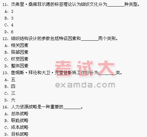 15、社會(huì)知覺(jué)是指在社會(huì)情境中以________為對(duì)象的知覺(jué)。 A、客體 B、參照物 C、自然事物 D、人 16、知覺(jué)者把知覺(jué)對(duì)象假想成和自己一樣,認(rèn)為自己有的特質(zhì)別人也有,這種現(xiàn)象叫 ________。 A、投射作用 B、月暈效應(yīng) C、行為歸因 D、首因效應(yīng) 17、下面選項(xiàng)中,屬于不需要工作分析確定的工作說(shuō)明書(shū)的內(nèi)容是________。 A、技能 B、學(xué)歷 C、知識(shí) D、責(zé)任 18、一般說(shuō)來(lái),在企業(yè)組織的人才選拔錄用程序中,________是作為應(yīng)試者的初次競(jìng)爭(zhēng)。 A、面試 B、口試 C、筆試 D、心理考查 19、基于對(duì)人員為什么留在公司的原因而制定的計(jì)劃稱為_(kāi)_______。 A、靈活性計(jì)劃 B、人員保留計(jì)劃 C、培訓(xùn)計(jì)劃 D、人力資源發(fā)展計(jì)劃 20、內(nèi)部招聘的最大弊端在于________。 A、員工缺乏創(chuàng)新性 B、合格員工數(shù)量不足 C、對(duì)員工缺乏深入的了解 D、近親繁殖的問(wèn)題 21、對(duì)關(guān)鍵事件進(jìn)行判定,目的是判定其能否________。 A、精確計(jì)量工作績(jī)效 B、有效地代表某一工作績(jī)效要素所要求的績(jī)效水平 C、明確工作績(jī)效評(píng)價(jià)標(biāo)準(zhǔn) D、及時(shí)的反饋 22、能夠避免趨中趨勢(shì)的評(píng)價(jià)方法是________。 A、評(píng)價(jià)尺度表法 B、強(qiáng)制分布法 C、交替排序法 D、關(guān)鍵事件法 23、每個(gè)薪資等級(jí)都有一個(gè)薪資變化的范圍,通常________。 A、每級(jí)范圍相等 B、薪資范圍隨等級(jí)上升而呈累退式的縮小 C、薪資范圍隨等級(jí)上升而呈進(jìn)式的擴(kuò)大 D、薪資范圍與薪資等級(jí)數(shù)無(wú)關(guān) 24、關(guān)于________的統(tǒng)計(jì)資料能夠顯示出外部公平的程度。 A、薪酬調(diào)查 B、招聘錄用 C、業(yè)績(jī)考查 D、培訓(xùn)和發(fā)展 25、當(dāng)企業(yè)處于技術(shù)和經(jīng)濟(jì)快速變化的時(shí)期或蕭條期時(shí),企業(yè)的培訓(xùn)開(kāi)發(fā)應(yīng)該________。 A、制定階段性的培訓(xùn)計(jì)劃 B、實(shí)施長(zhǎng)期計(jì)劃 C、長(zhǎng)期不變 D、根據(jù)過(guò)去的經(jīng)驗(yàn)制定 26、只有當(dāng)培訓(xùn)給雇主帶來(lái)的毛利潤(rùn)________培訓(xùn)的支出與雇員由于該培訓(xùn)而得到的加薪之和時(shí),組織才會(huì)給員工提供培訓(xùn)。 A、小于 B、大于 C、等于 D、不確定 27、管理技能培訓(xùn)的重點(diǎn)總是指向________。 A、在職培訓(xùn) B、工作輪換 C、崗?fù)馀嘤?xùn) D、管理技能 28、一般而言,有下列情形可對(duì)員工進(jìn)行降職處理,但不包括________在內(nèi)。 A、由于組織機(jī)構(gòu)調(diào)整而精簡(jiǎn)工作人員 B、不能勝任本職工作,調(diào)任其他工作又沒(méi)有空缺 C、應(yīng)員工要求,如身體健康狀欠佳,不能承擔(dān)繁重工作 D、員工有強(qiáng)烈的升職野心 29、退休是指員工在達(dá)到________的基礎(chǔ)上,按照國(guó)家有關(guān)法規(guī)和員工與企業(yè)的勞動(dòng)合同而離開(kāi)企業(yè)的行為。 A、一定年齡 B、為企業(yè)服務(wù)一定年限 C、一定職業(yè) D、A和B 30、法律事實(shí)分為法律行為和________。 A、法律關(guān)系 B、法律義務(wù) C、法律事件 D、法律權(quán)利 31、具有繳納保險(xiǎn)費(fèi)義務(wù)的人是________。 A、保險(xiǎn)人 B、被保險(xiǎn)人 C、投保人 D、第三人 32、18世紀(jì)初期,勞動(dòng)合同從________中獨(dú)立出來(lái)。 A、民事合同體系 B、刑事體系 C、行政體系 D、立法體系 33、《基本生活保障和再就業(yè)協(xié)議》的協(xié)議期限原則上不超過(guò)________。 A、1年 B、2年 C、3年 D、6年 34、再就業(yè)服務(wù)中心基本生活保障和再就業(yè)費(fèi)用的管理和使用,按照________與勞動(dòng)和社會(huì)保障部的有關(guān)規(guī)定執(zhí)行。 A、財(cái)政部 B、民政部 C、國(guó)務(wù)院 D、社會(huì)保障部 35、國(guó)家支持勞動(dòng)者自愿組織起來(lái)就業(yè)和________實(shí)現(xiàn)就業(yè)。 A、發(fā)展服務(wù)業(yè) B、投身鄉(xiāng)鎮(zhèn)企業(yè) C、在“三資”企業(yè)就業(yè) D、從事個(gè)體經(jīng)營(yíng) 36、集體合同期限為_(kāi)_______。 A、半年至一年 B、一年至三年 C、三年至五年 D、五年至八年 37、《勞動(dòng)法》規(guī)定:用人單位瀕臨破產(chǎn)進(jìn)行法定整頓期間或者生產(chǎn)經(jīng)營(yíng)狀況發(fā)生嚴(yán)重困難,確需裁減人員的,應(yīng)當(dāng)提前________日向工會(huì)或者全體職工說(shuō)明情況,聽(tīng)取工會(huì)或者職工的意見(jiàn),經(jīng)向勞動(dòng)行政部門(mén)報(bào)告后,可以裁減人員。用人單位依據(jù)本條規(guī)定裁減人員,在________個(gè)月內(nèi)錄用人員的,應(yīng)當(dāng)優(yōu)先錄用被裁減的人員。 A、60;12 B、30;12 C、30;6 D、90;6 38、《勞動(dòng)法》規(guī)定,勞動(dòng)合同違約責(zé)任形式是________責(zé)任。 A、政治 B、民事 C、行政 D、刑事 39、我國(guó)《勞動(dòng)法》規(guī)定:對(duì)懷孕________個(gè)月以上的女職工,不得安排其延長(zhǎng)工作時(shí)間和夜班勞動(dòng)。 A、三 B、四 C、七 D、五 40、我國(guó)目前實(shí)行勞動(dòng)者每日工作________小時(shí),每周工作________