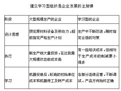 張聲雄:所謂"萬事開頭難",我們首先要了解究竟什么才是學習型組織。對這個問題的回答,今天不論在中國還是在全球尚無統一的認識。比較認同的意見都是指:通過有效的激勵,培育全體員工堅持終身學習,長盛不衰的學習毅力使他們能持續提高政治素質、道德水平、知識程度和技能等級,并在此基礎上加強組織學習,產生乘積的迭加效應,即將分散在每個員工頭腦中的知識、信息和經驗整合成巨大的知識力量推動企業的成功與發展。學習型組織能最大限度地開發人的潛能,使人力資本增值,創新永遠與發展相伴,使企業充滿生機和活力,不斷從輝煌走向新的輝煌。