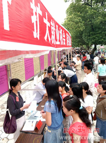 5月25日上午,新余市在人民廣場啟動“2007年民營企業招聘周”活動。當日,90多家民營企業提供7000多個崗位,吸引了眾多下崗工人、大中專院校畢業生和農民工等前來應聘。活動由市勞動和社會保障局、市總工會和市工商聯共同組織,招聘活動將于26日至31日分別在新余經濟開發區、新余高專和縣(區)鄉鎮舉行。