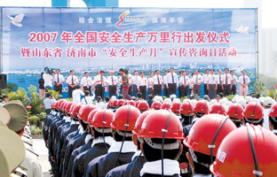 | | 圖為2007年全國安全生產萬里行出發儀式在山東省濟南市泉城廣場舉行。新華社記者 徐速繪攝 |