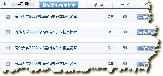1)找到要報名的招生簡章,點擊“在線報名”按鈕